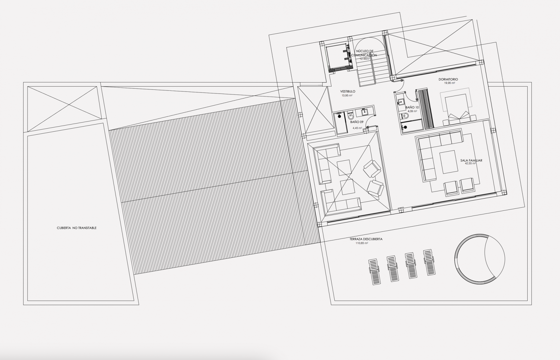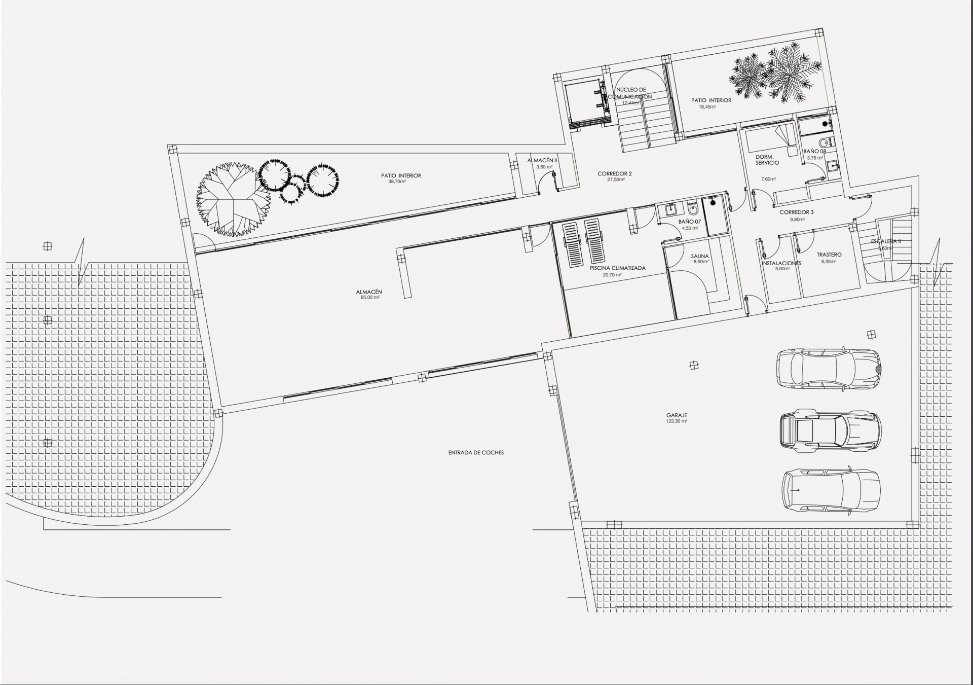 The upper floor is specially dedicated to a bedroom with its own living room, opening onto a private terrace with a jacuzzi, offering an intimate and relaxing space. In the basement, the garage with a capacity for five vehicles ensures convenience, while the wellness area offers a full gym and spa, benefiting from natural light entering through an English patio.