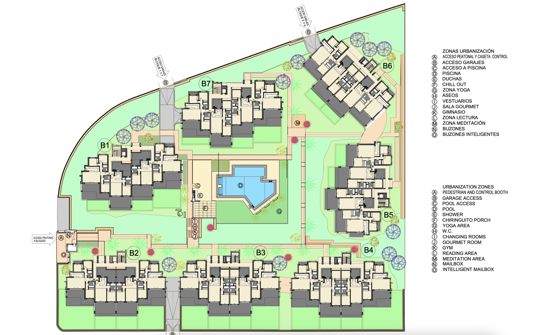 This resort consists of ground floor homes with private gardens, apartments on the 1st floor with spacious terraces, and penthouses on the 2nd floor with solarium.