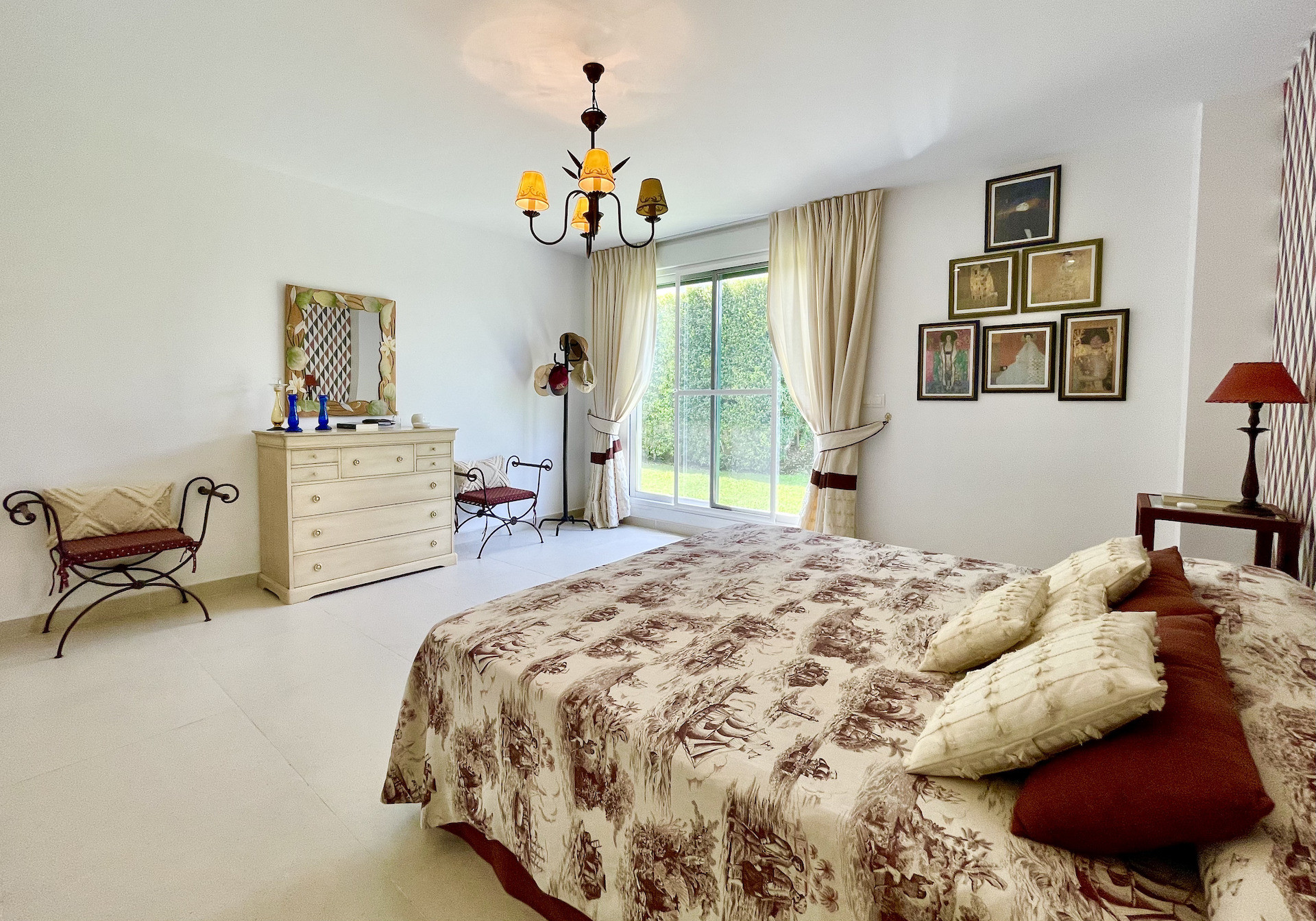 This 200 m² ground floor apartment combines contemporary design and comfort in a serene setting. From the entrance hall, you access a large living-dining room bathed in natural light streaming through expansive windows, which connects to a west-facing covered terrace. This outdoor space, overlooking a green area, invites you to enjoy sunsets in an intimate and relaxed atmosphere. The open-plan kitchen, equipped with additional cabinetry, adds practicality and style to everyday living.