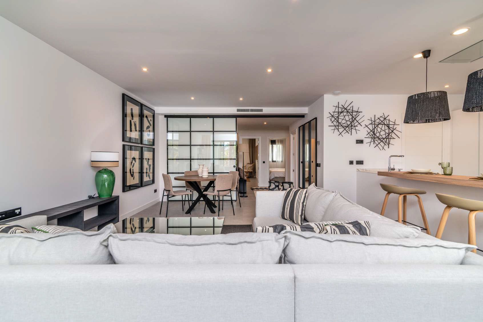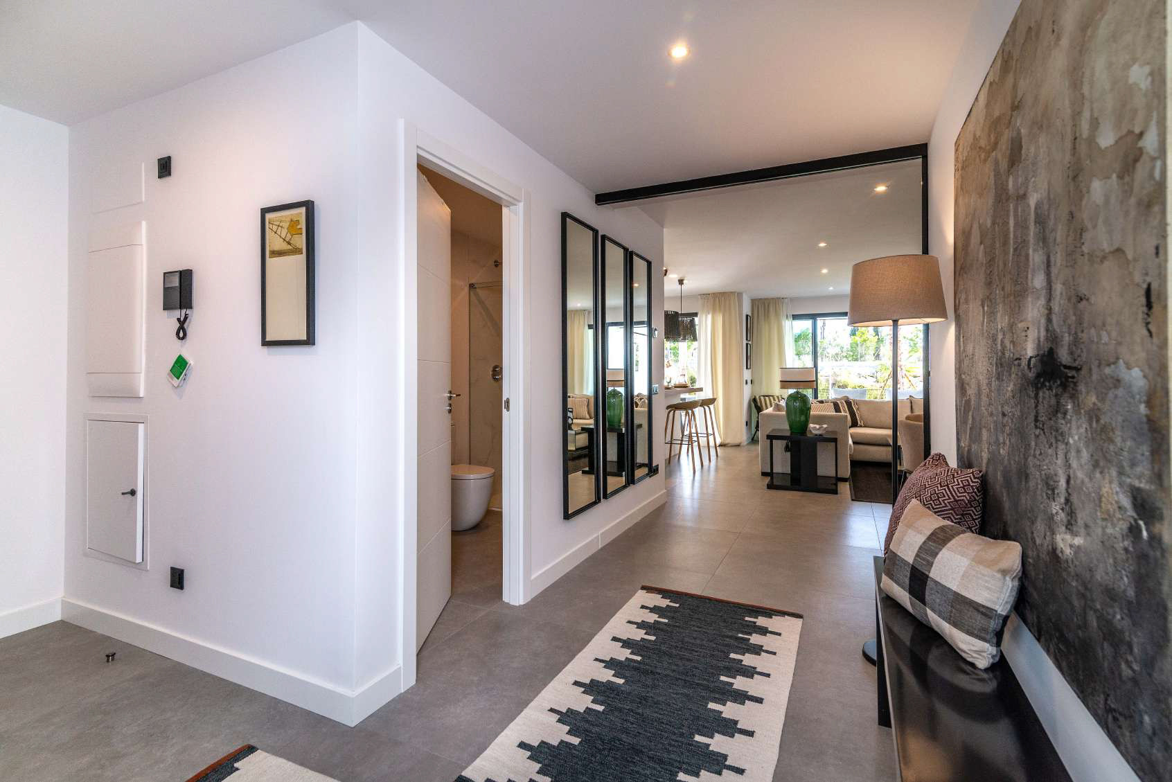El diseño y la planificación de estos apartamentos son simplemente excepcionales, con una gestión del espacio meticulosa, una construcción de primera categoría y una gama de acabados interiores y exteriores de lujo. Cada apartamento cuenta con un sistema domótico, aire acondicionado, cocina totalmente equipada con electrodomésticos Neff y baños de diseño con los materiales más innovadores de Porcelanosa.