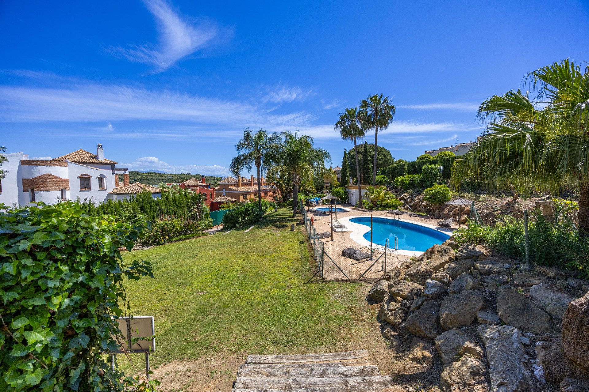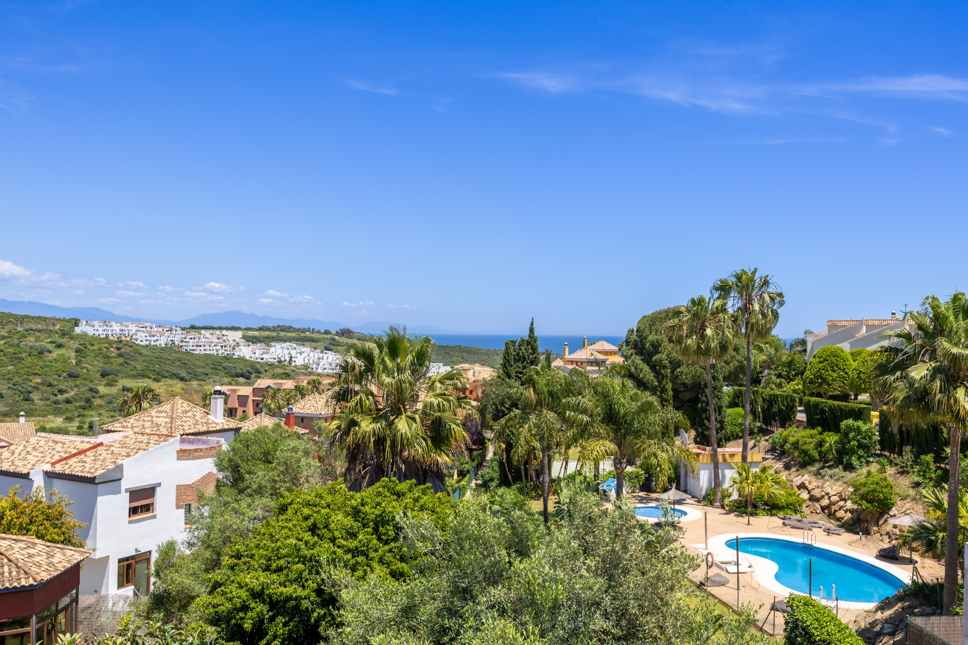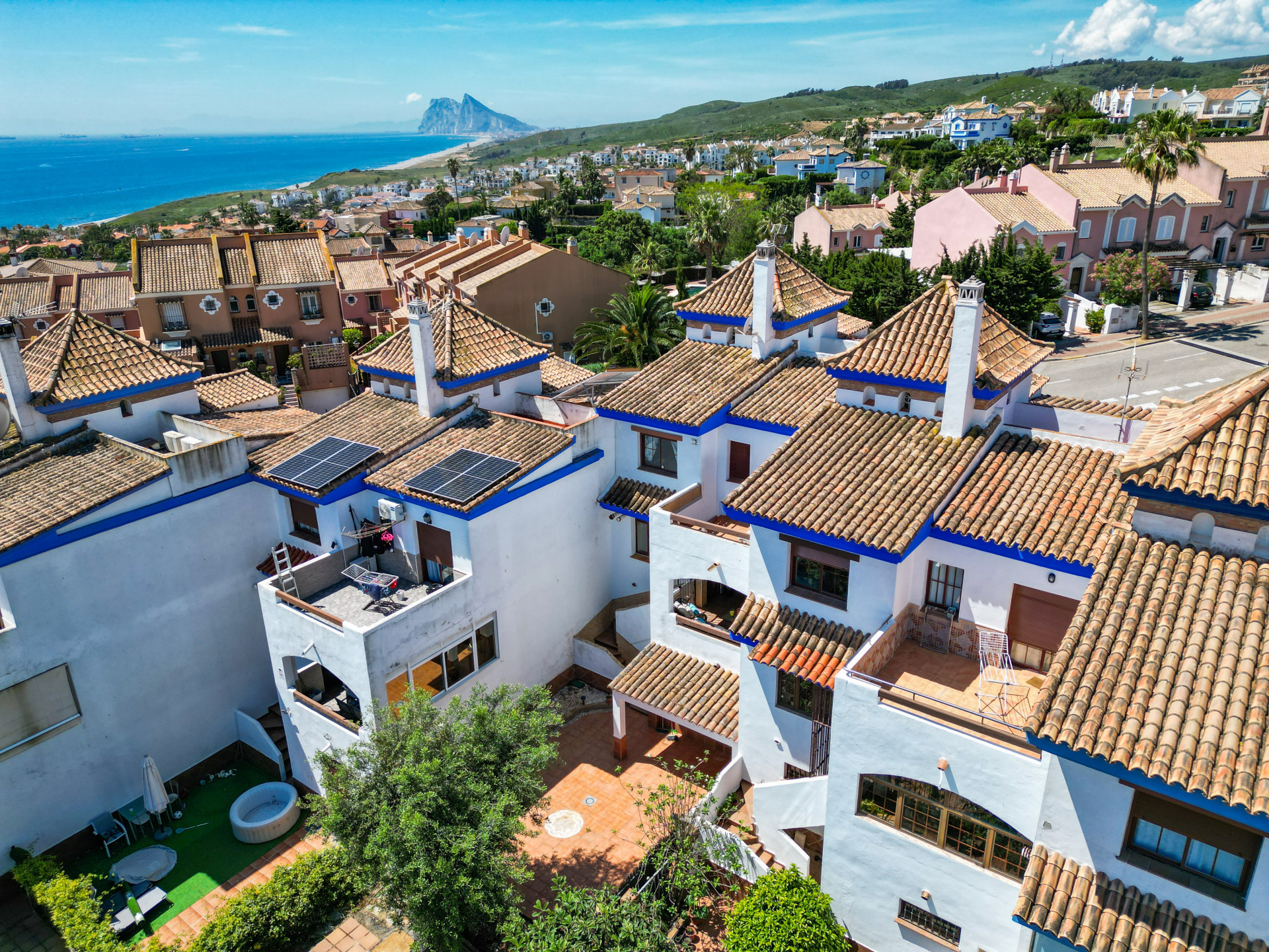 Ubicada en una tranquila y cuidada urbanización con piscina y zonas ajardinadas, esta encantadora casa adosada combina comodidad, amplitud y un entorno natural privilegiado. Desde su posición elevada, disfruta de hermosas vistas al mar, al peñón de Gibraltar, al campo de golf y a un entorno verde que transmite paz. Ideal tanto como residencia habitual como inversión para alquilar o disfrutar como segunda vivienda.