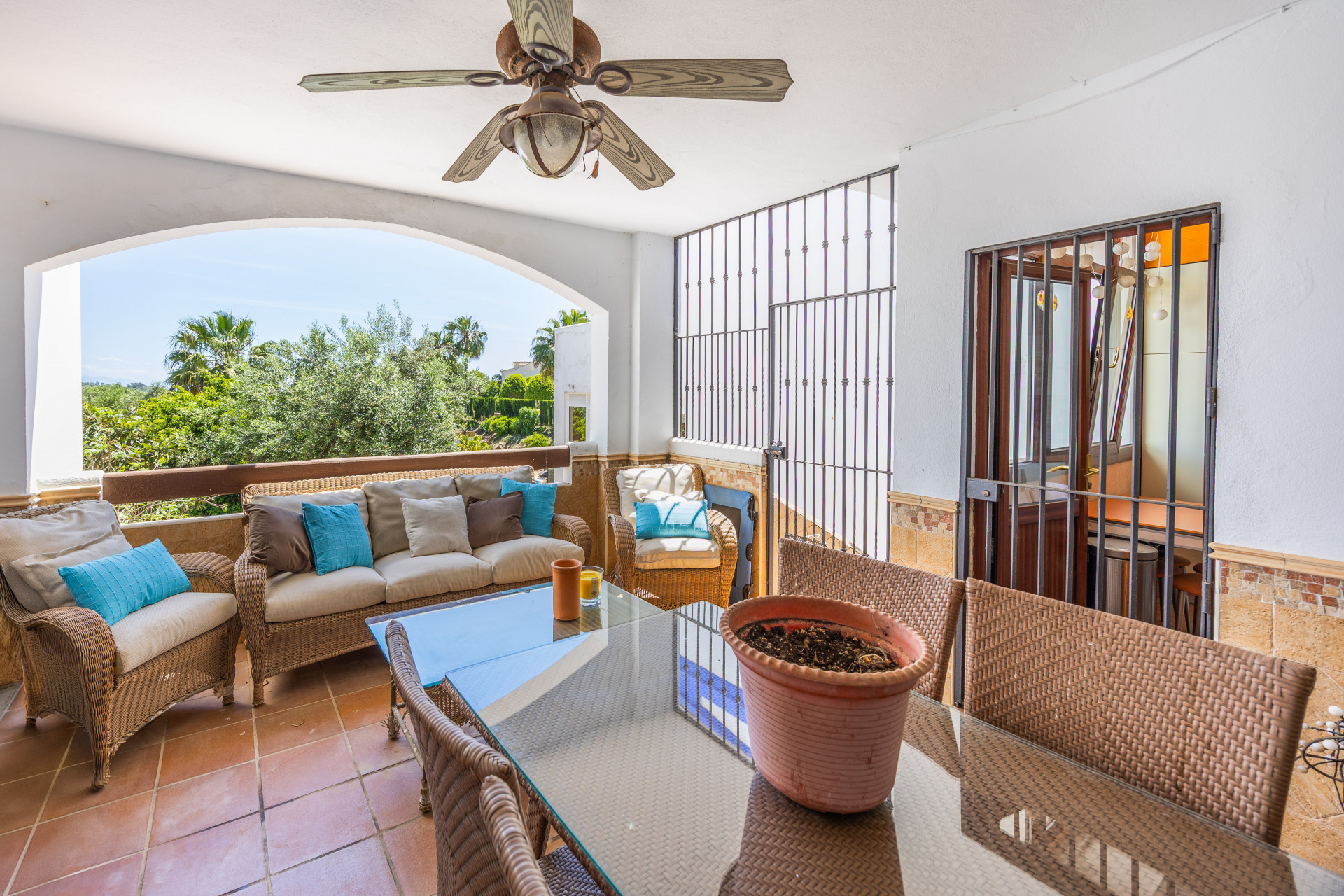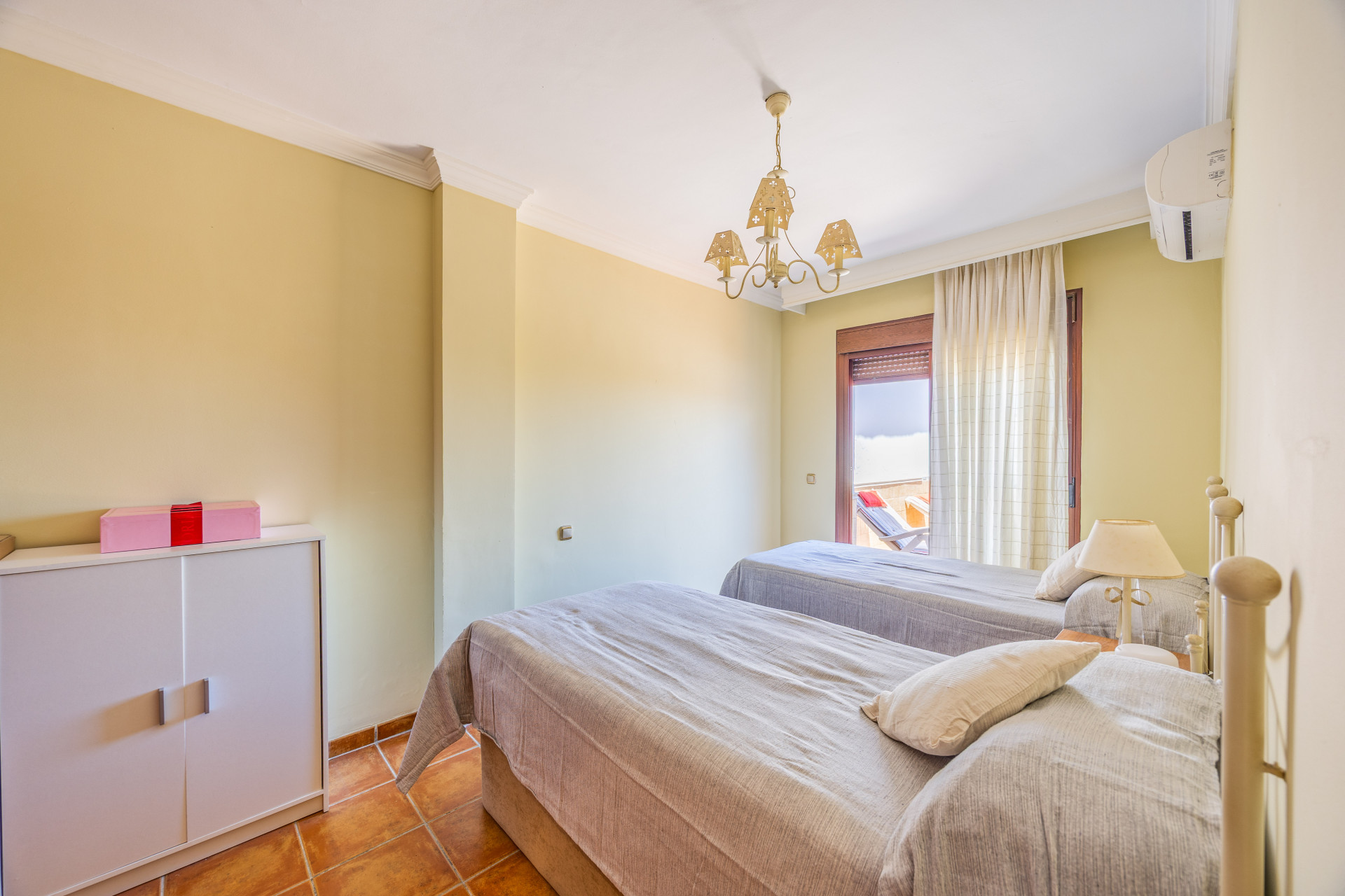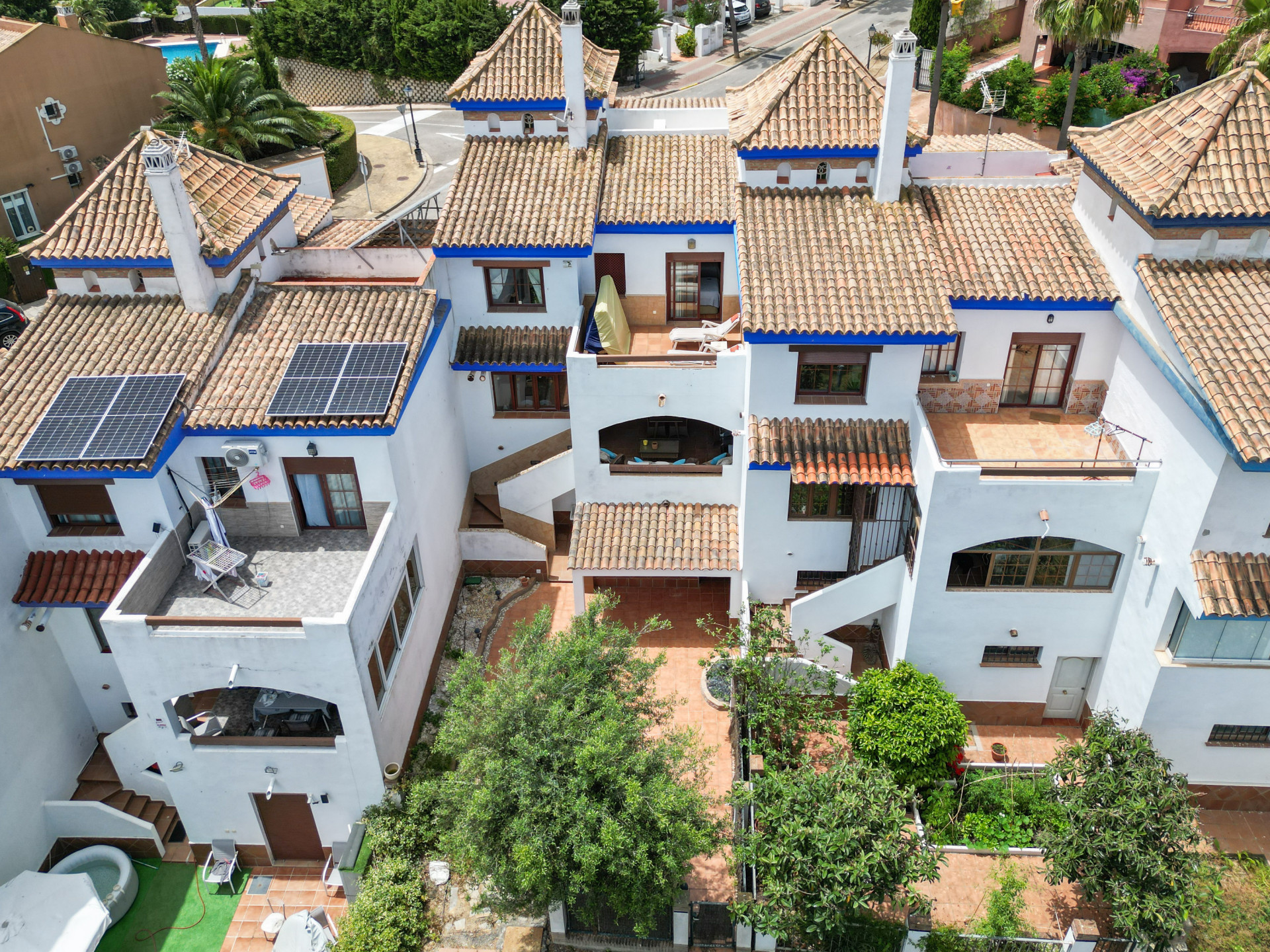 En el exterior, un coqueto patio andaluz da la bienvenida y añade encanto a esta vivienda situada a orillas del Mediterráneo. Además, la comunidad ofrece piscina, pista deportiva y zonas verdes para disfrutar del tiempo libre sin salir de casa.