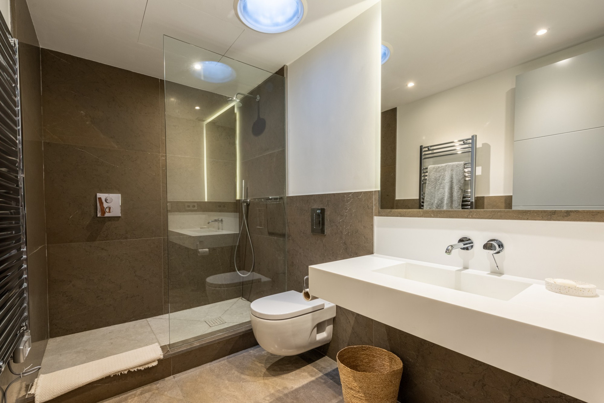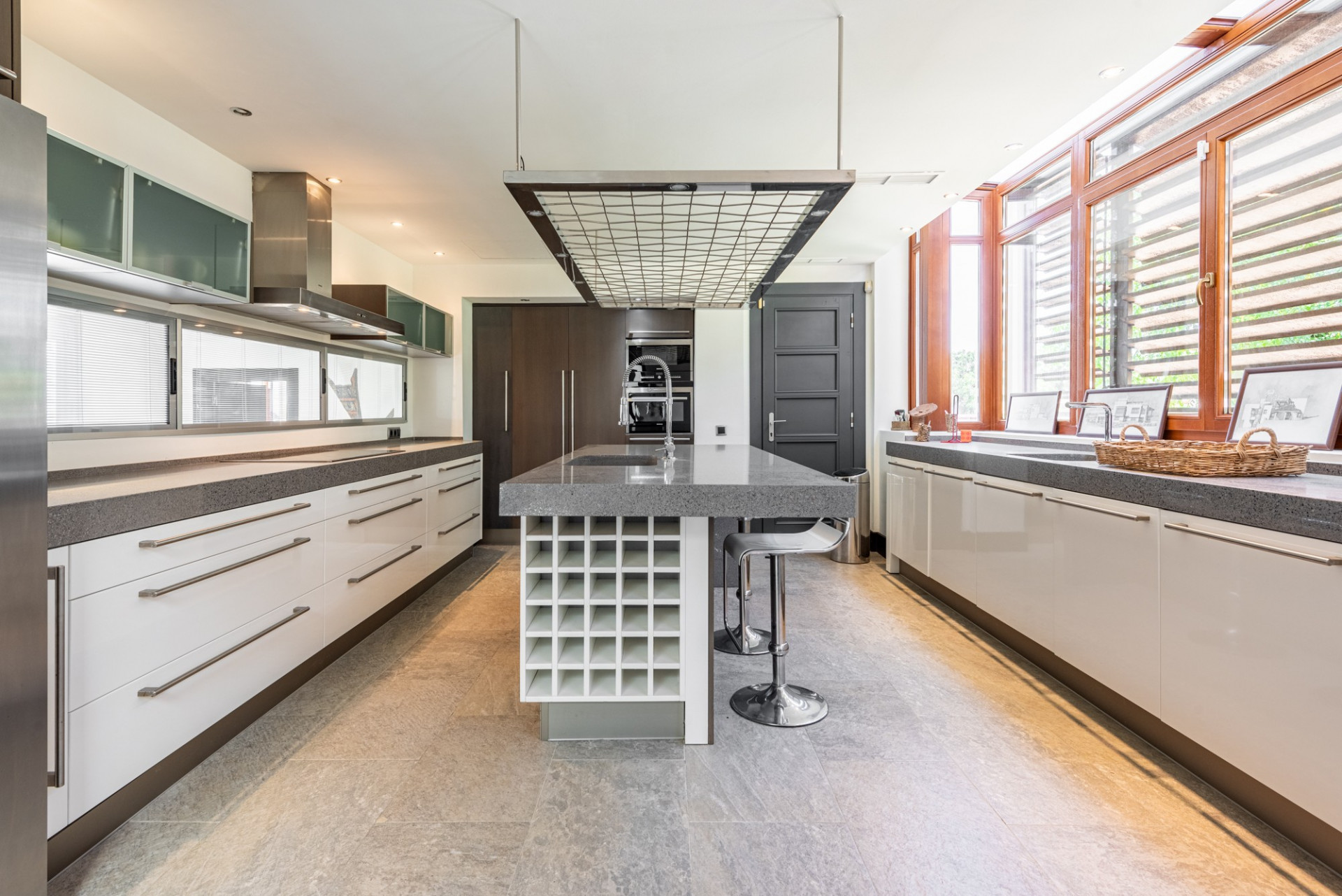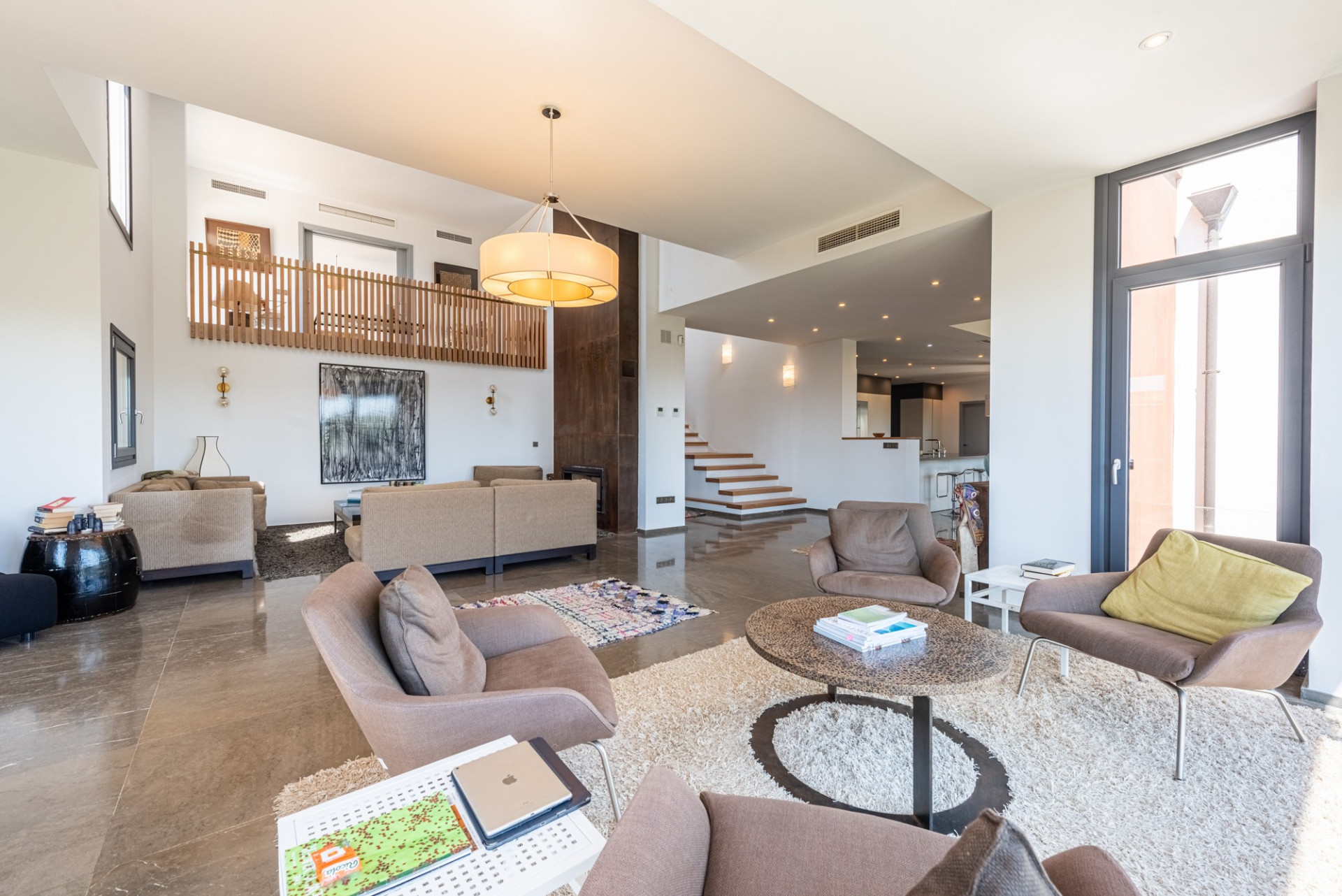 La primera villa, una residencia majestuosa de 5 habitaciones en suite, se despliega en tres niveles. Destaca por su cocina tipo americana recientemente renovada y un luminoso salón de doble altura, dotado de amplios ventanales que bañan de luz natural los espacios. Esta casa, con un diseño inteligente y amplio, está equipada con las últimas comodidades, incluyendo un garaje doble y puerto para coche.