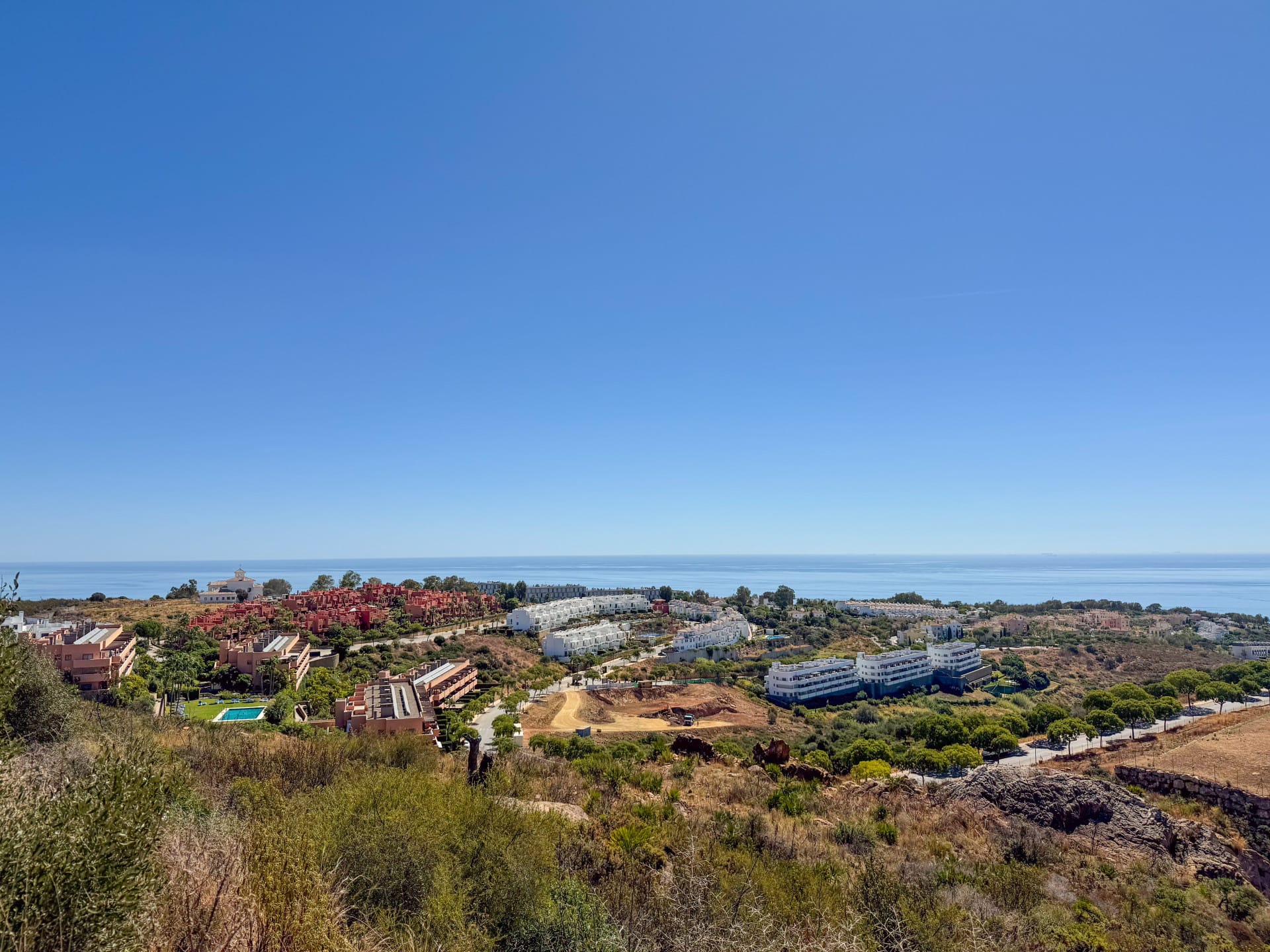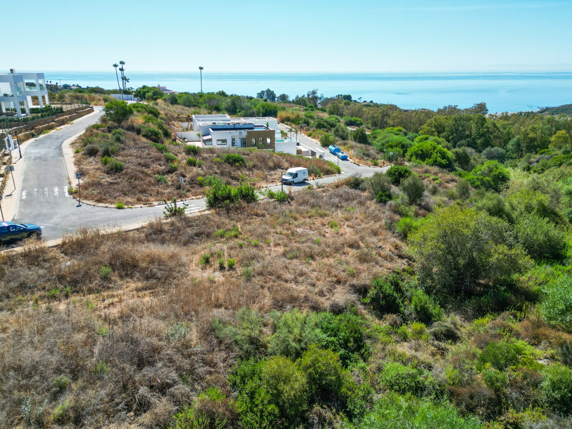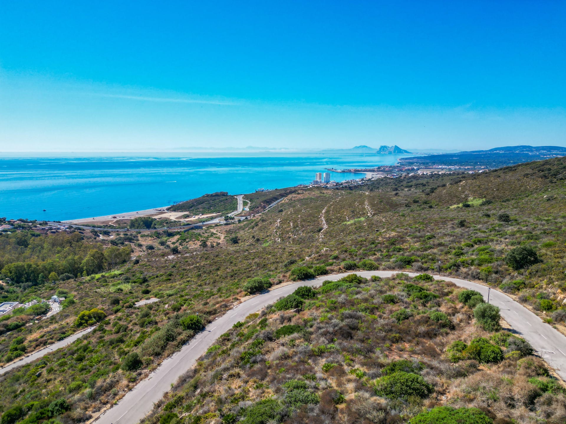 La parcela ofrece unas impresionantes vistas abiertas al mar Mediterráneo, con la silueta de Gibraltar y, en los días más claros, la costa africana al horizonte, creando un escenario natural único y lleno de inspiración.