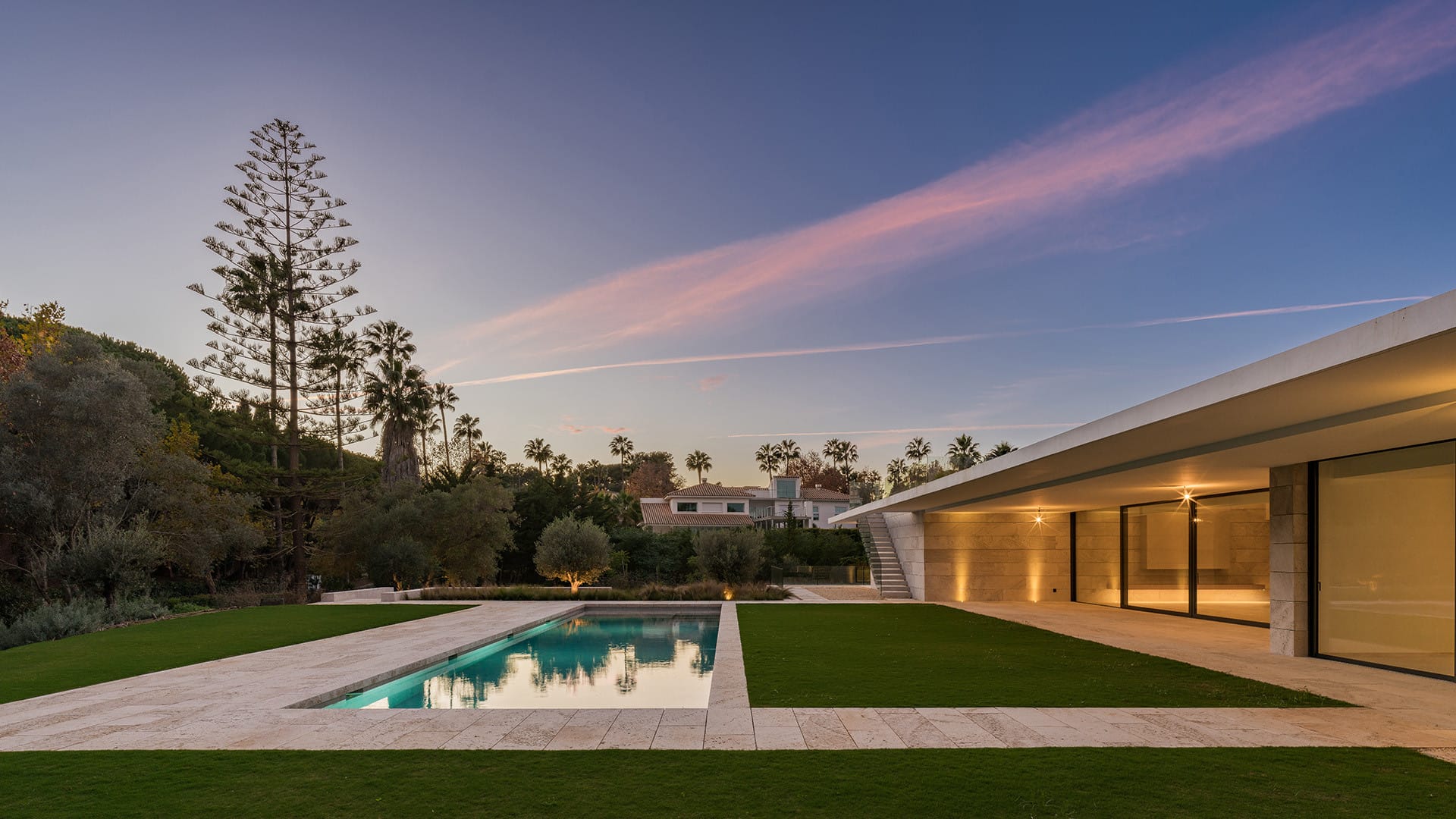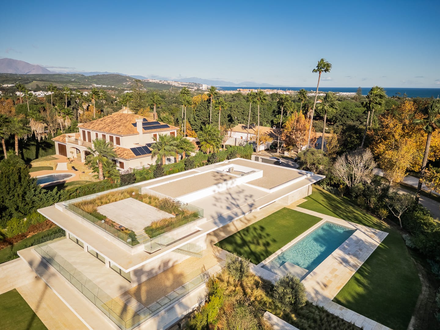 Sobre una amplia parcela de más de 3.100 m², la vivienda despliega más de 600 m² interiores, amplias terrazas y un solárium en la azotea desde donde contemplar mágicos atardeceres. Cada detalle ha sido pensado para ofrecer el máximo confort: grandes ventanales que se abren al jardín, una cocina de diseño equipada con tecnología de vanguardia y estancias que combinan privacidad con sofisticación.