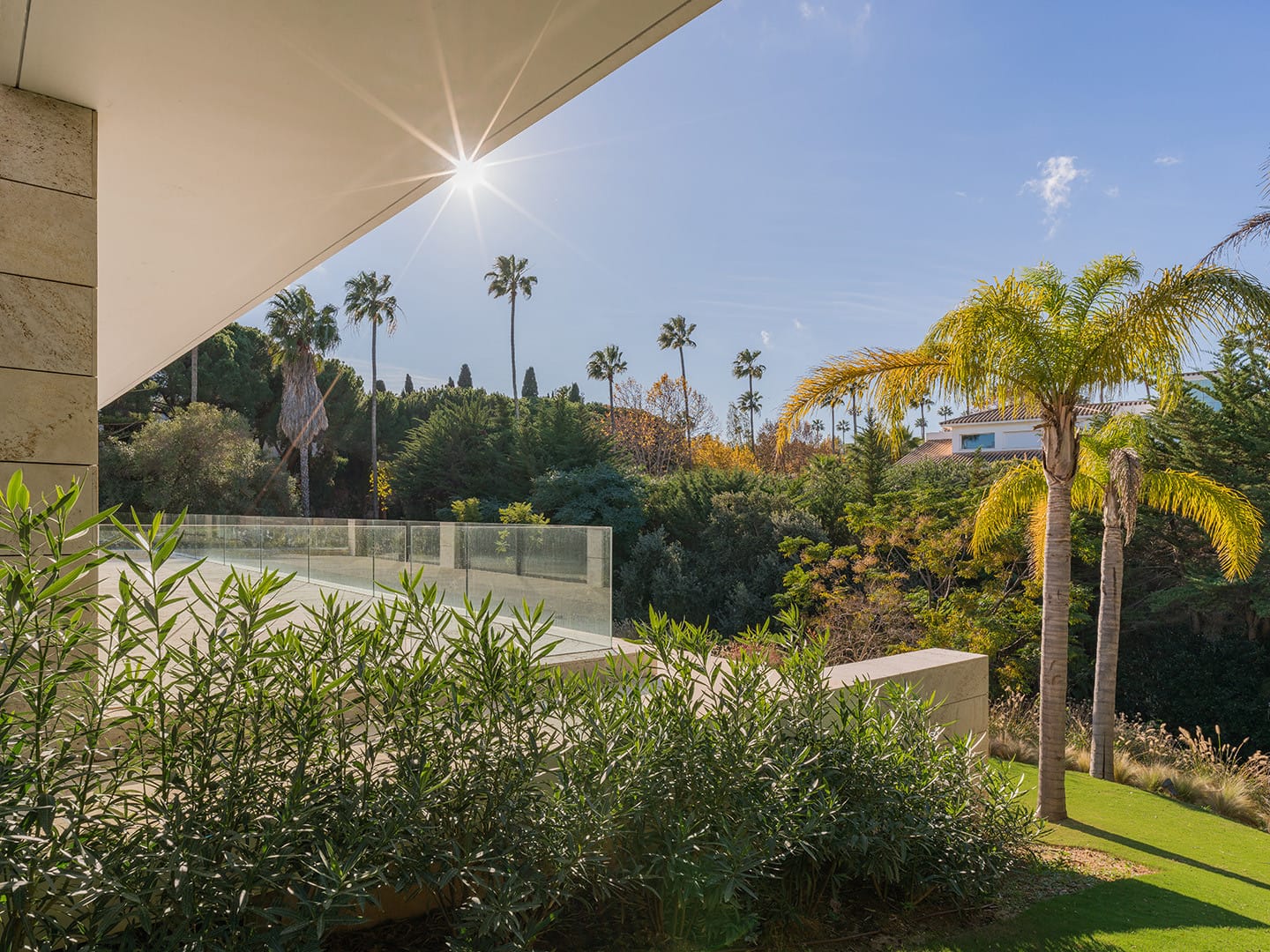 El exterior es un auténtico escenario para disfrutar: piscina con zona especial para los más pequeños, área de barbacoa, rincones verdes cuidados al detalle y un entorno paisajístico que refuerza la sensación de estar en un refugio natural dentro de Sotogrande.