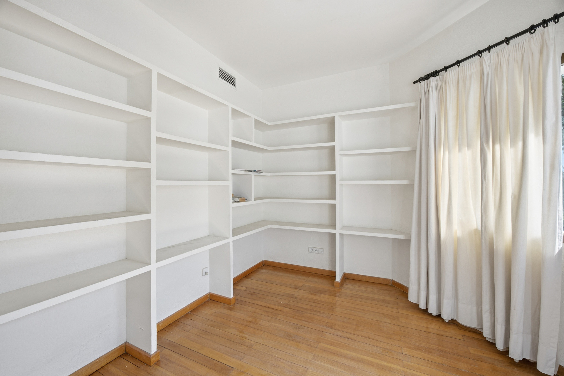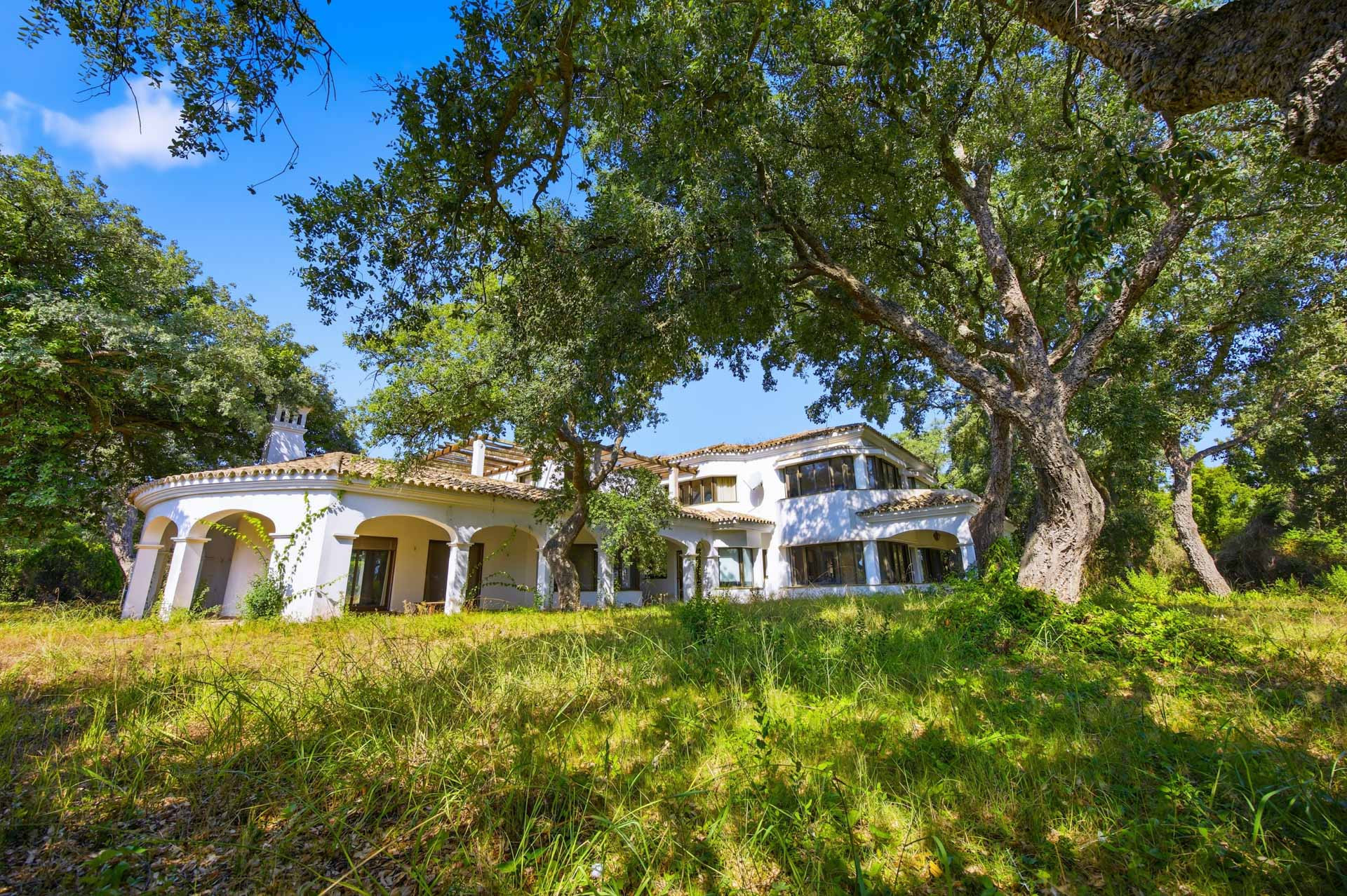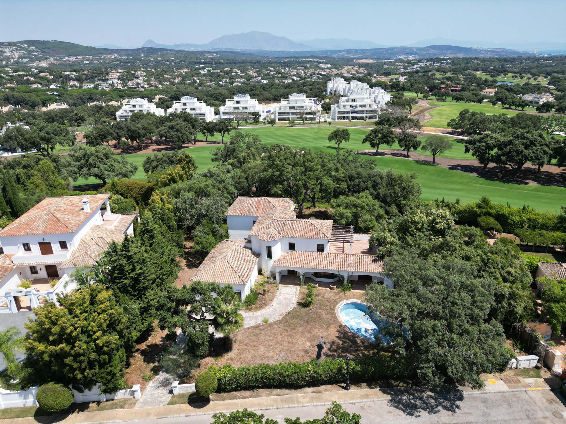La villa está distribuida en seis amplios dormitorios y tres baños, además de un enorme salón y cocina con gran alacena, ofreciendo un espacio generoso para familias numerosas o quienes buscan amplitud y versatilidad. Las zonas comunes disfrutan de una excelente luminosidad gracias a sus terrazas privadas y cubiertas, que proporcionan magníficas vistas al jardín rodeado de majestuosos alcornoques, al campo de golf y a la piscina privada. El solárium y los suelos de madera añaden un plus de confort y calidez en cada estancia.