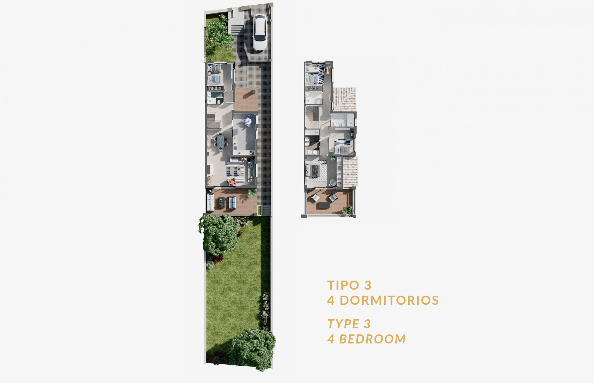 Estas viviendas ofrecen amplios y luminosos espacios, cuentan con terraza descubierta y jardines con vistas al campo de golf .